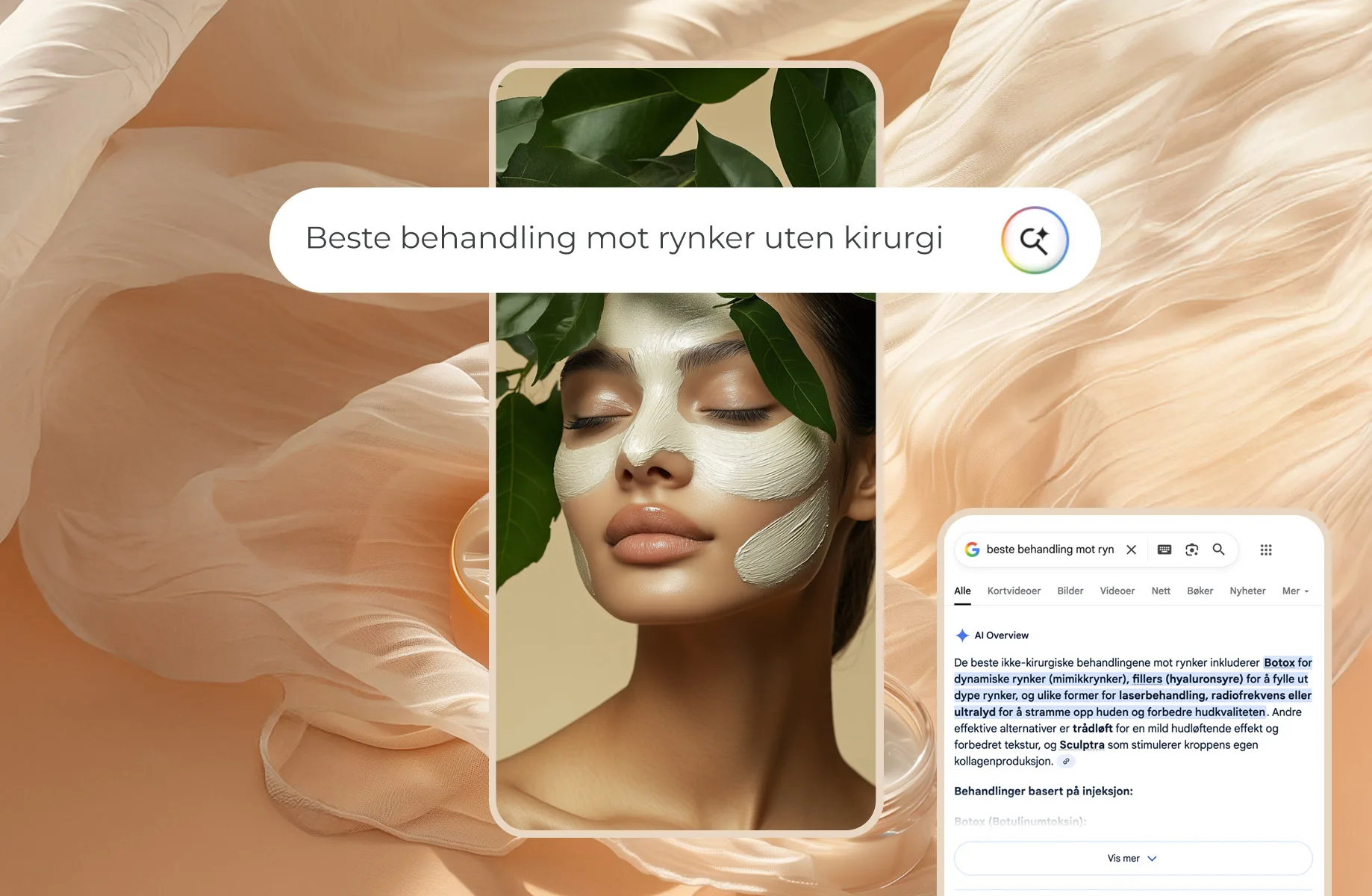 Eksempel: Har du en klinikk som tilbyr hudbehandlinger, og noen søker «beste behandling mot rynker uten kirurgi». Tidligere ville de klikket seg inn på nettsiden din. Nå får de en kort AI-oppsummering med ulike alternativer direkte i søkeresultatet – og stopper der.